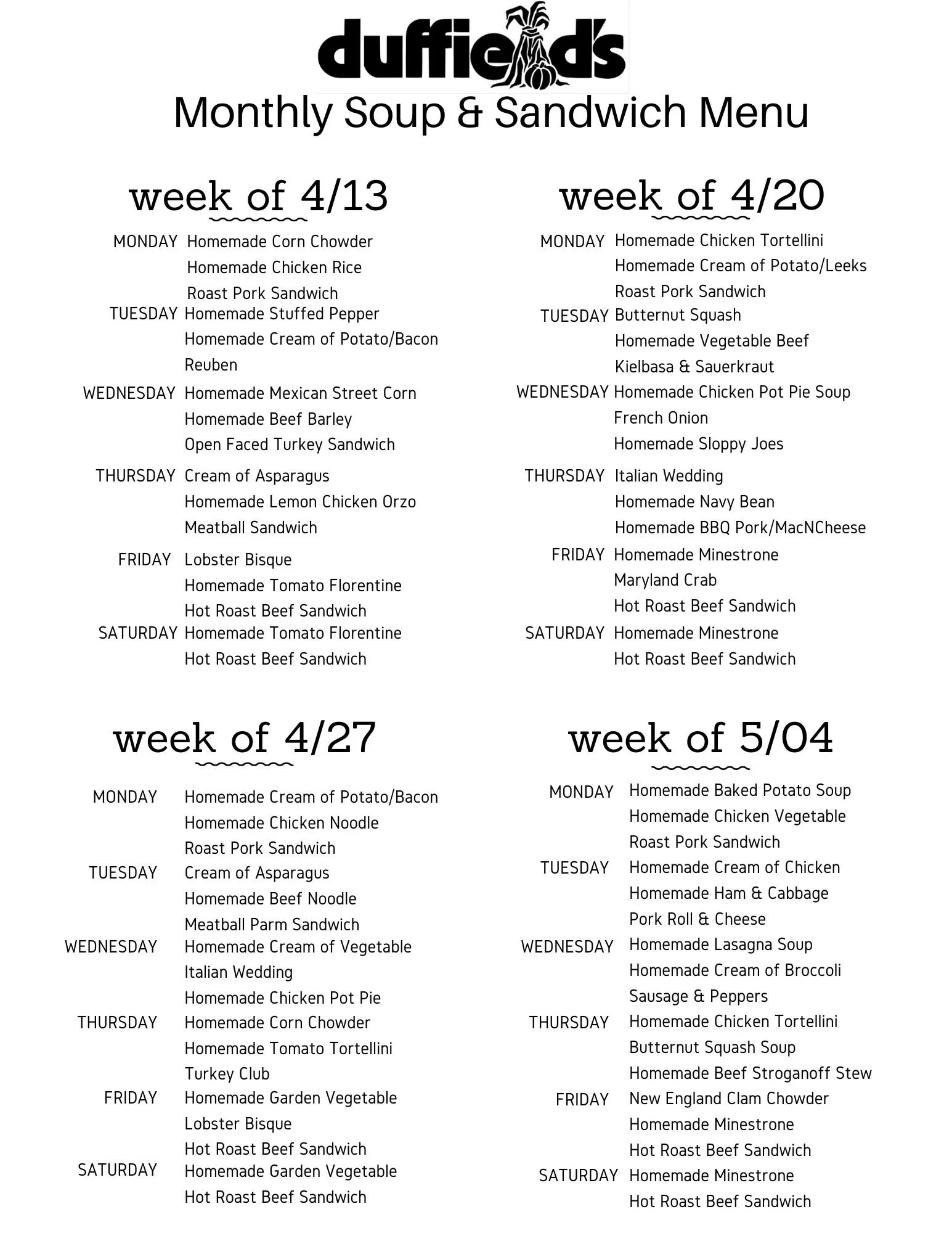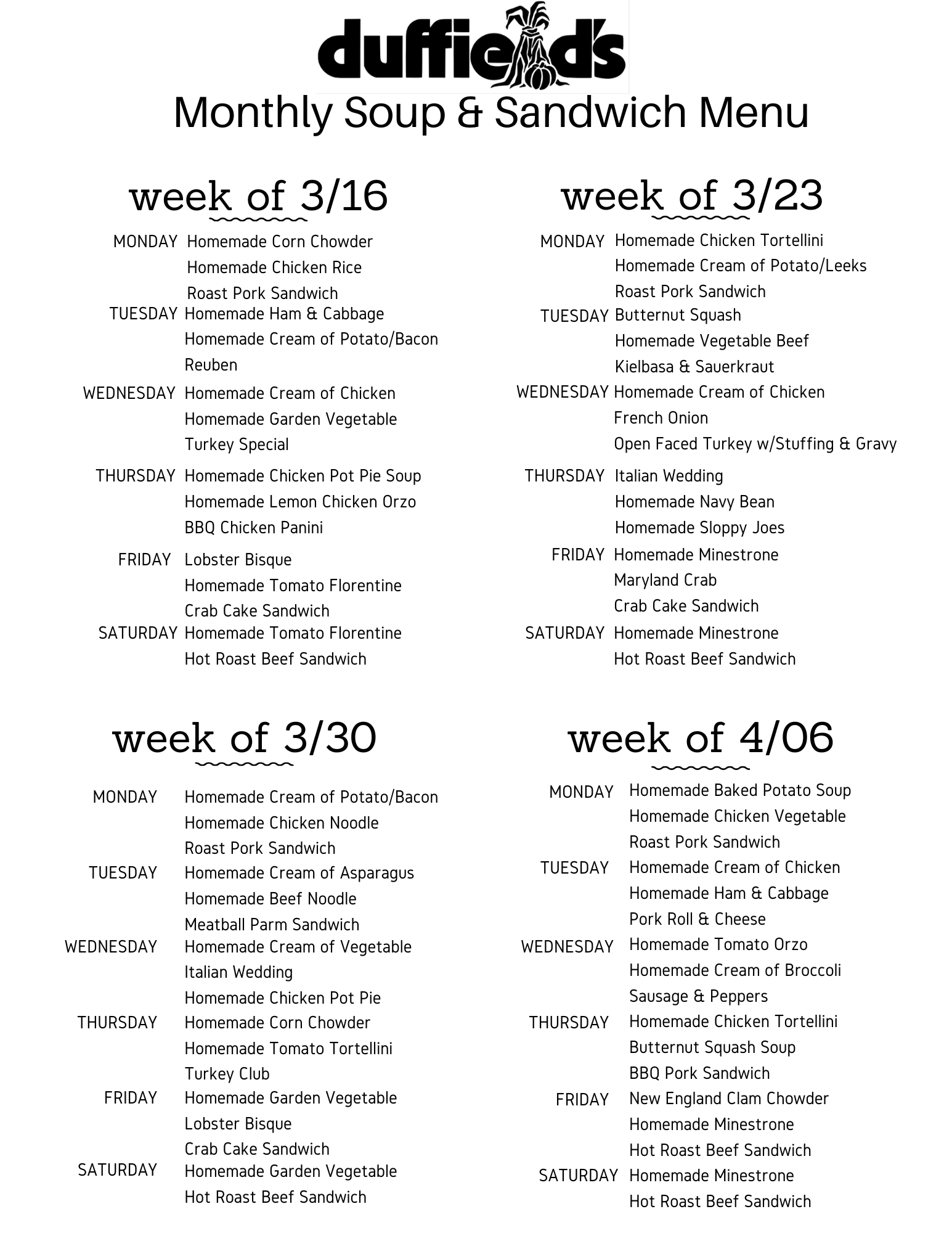 Made with Farm Fresh Ingredients Weekly Deli SpecialsOrder ahead 856-589-7090 x 103Available daily, while supplies last - menu subject to change without notice!